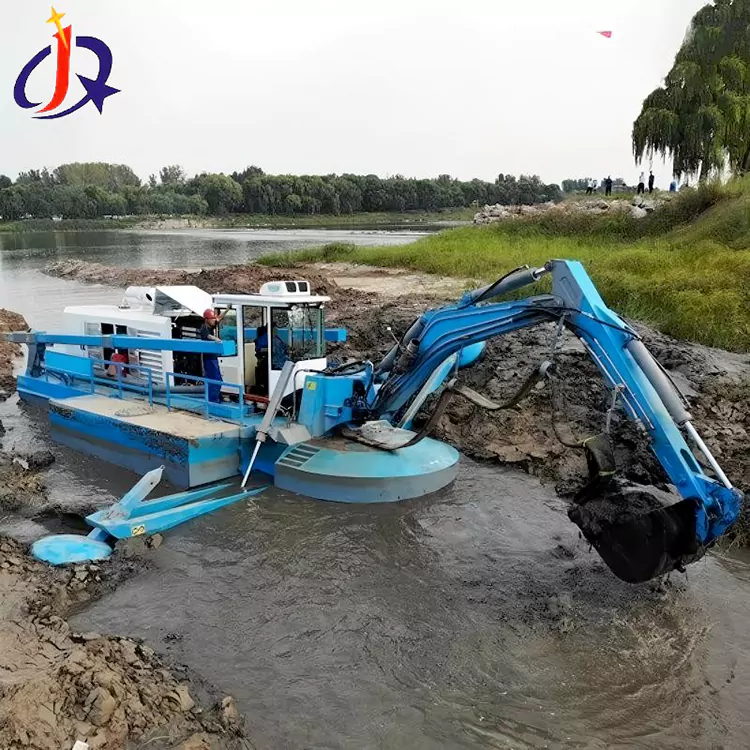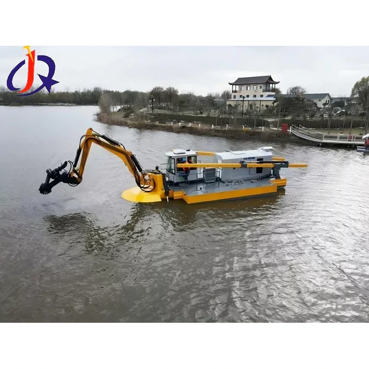 അക്വാട്ടിക് കള വിളവെടുപ്പും അവശിഷ്ടങ്ങൾ വീണ്ടെടുക്കലും: കളക്ഷൻ റേക്കുകളോ ഗ്രാബ് ബക്കറ്റുകളോ കൊണ്ട് സജ്ജീകരിച്ചിരിക്കുന്ന ഇത് ജലസസ്യങ്ങൾ, ഫ്ലോട്ടിംഗ് അവശിഷ്ടങ്ങൾ, വ്യാവസായിക അവശിഷ്ടങ്ങൾ, കുളത്തിലെ ചെളി എന്നിവ കാര്യക്ഷമമായി വൃത്തിയാക്കുന്നു.
